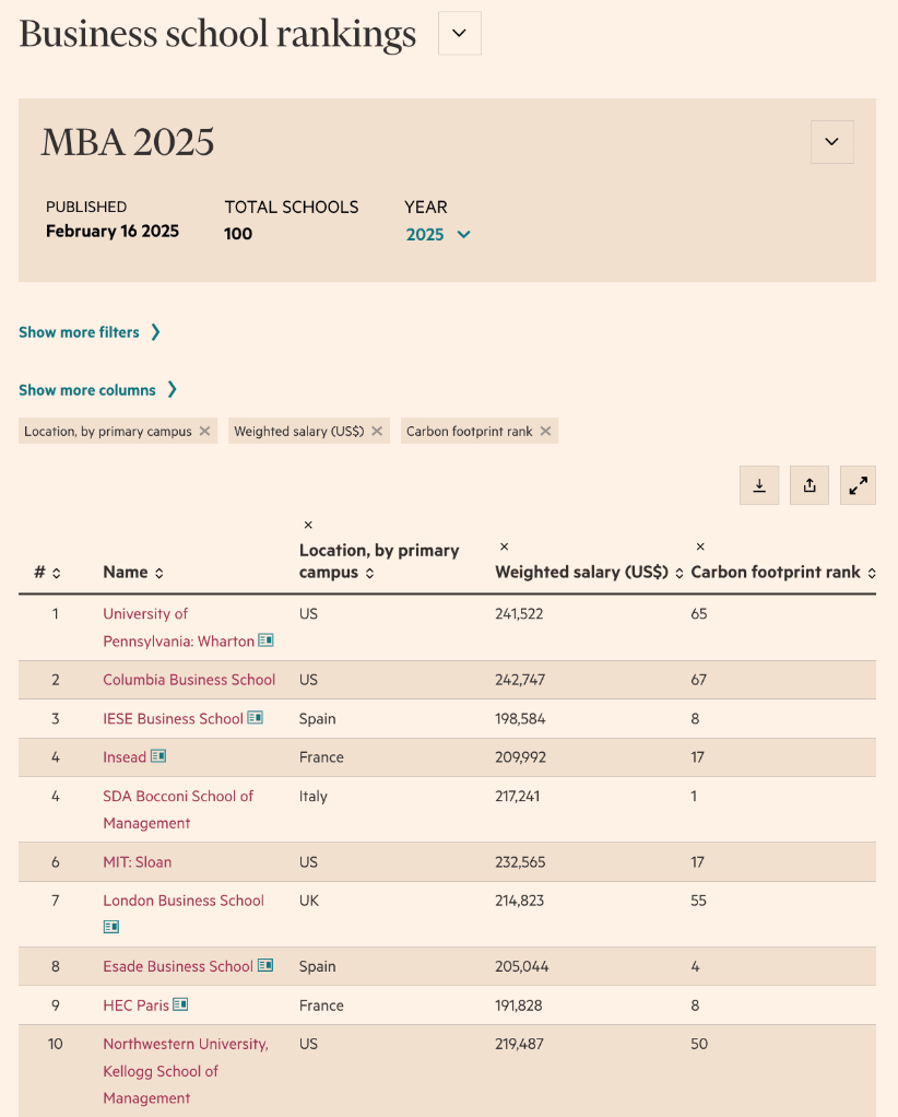Find out more about the FT's Global MBA Rankings for 2025.